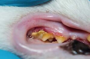 歯石が付着している部分を放置しておくと、炎症を起こし、顎の骨折や、頬の皮膚が膿んで穴が空いてしまいます(眼窩膿瘍:がんかのうよう)。くしゃみや鼻水が出るようになった場合は要注意です。